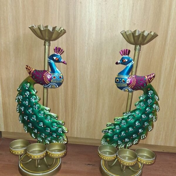 Elegant Metal Peacock Candle Holder -for Home Decoration Diwali, Intricate Design Tealight Candle Holders for Home Diwali Decor, Handpainted Tealight Candle Holder (Double Side)