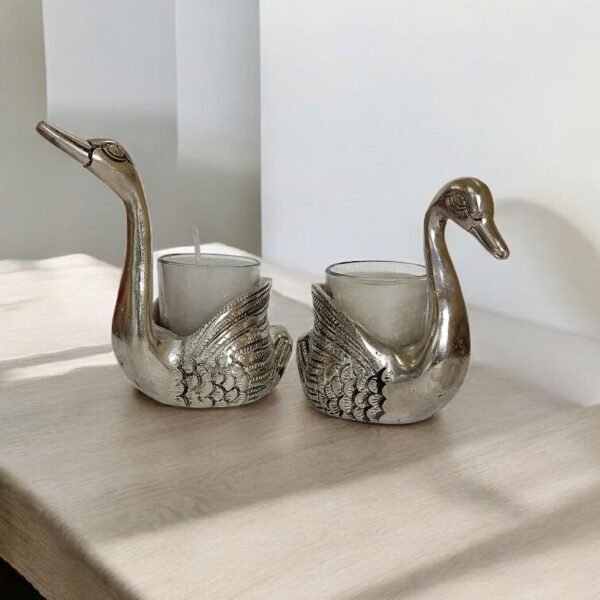 Kraftsun Aluminium Silver Colored Pair of Swan for Good Luck and Love | Candle Holder for Home Decor Showpiece for Gifting